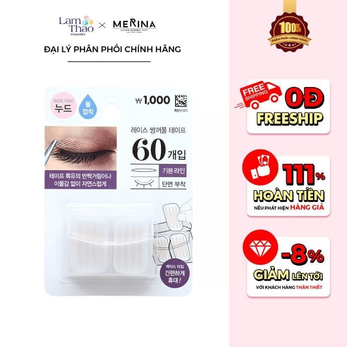 Mắt mí lót, một mí hay mí không đều thường khiến nhiều bạn mất tự tin trong giao tiếp. Đừng lo, Miếng Dán Mí Lưới Ren Loại Thường 60 Miếng Merina sẽ giúp bạn giải quyết vấn đề này nhanh chóng với nhiều ưu điểm như: