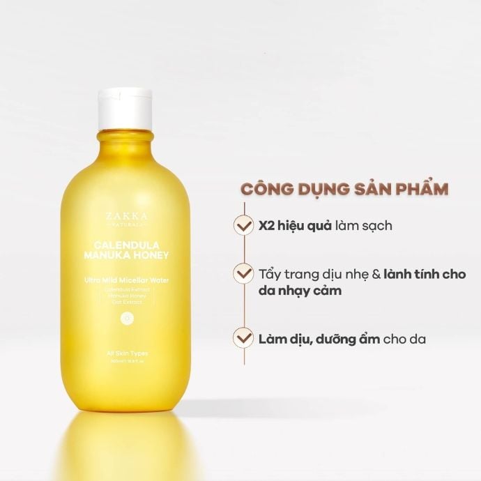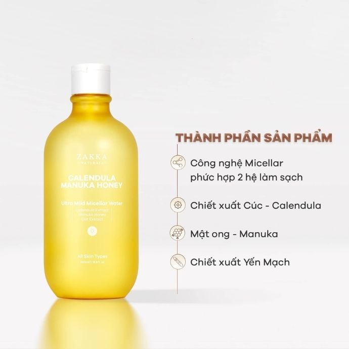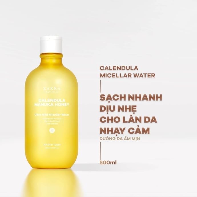 Làn da nhạy cảm, dễ kích ứng hay đang treatment thường “khó chiều” hơn trong bước làm sạch. Chỉ cần một sản phẩm tẩy trang quá mạnh cũng có thể khiến da khô rát, ửng đỏ và mất đi độ cân bằng tự nhiên. Chính vì vậy, việc tìm kiếm một sản phẩm vừa làm sạch hiệu quả vừa đủ dịu nhẹ luôn là nỗi băn khoăn của rất nhiều người. Nước Tẩy Trang Zakka Naturals Calendula Manuka Honey Ultra Mild Micellar Water ra đời như một giải pháp nhẹ nhàng, giúp cuốn trôi bụi bẩn mà vẫn nâng niu làn da, mang lại cảm giác sạch thoáng nhưng êm dịu sau mỗi lần sử dụng.