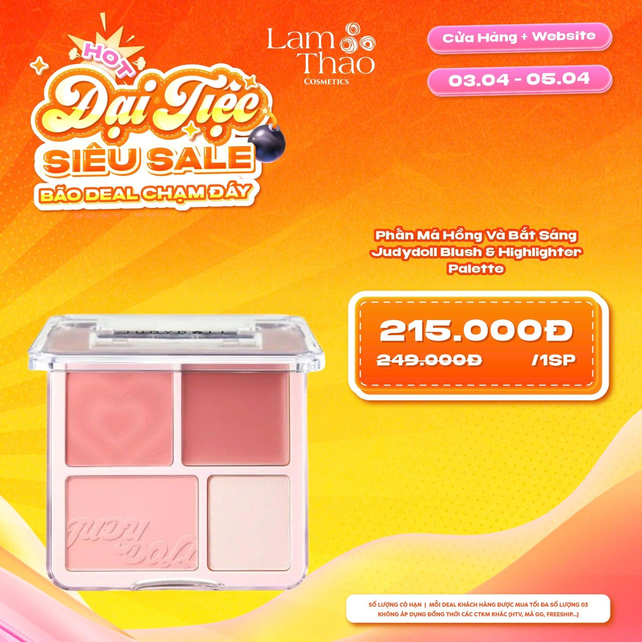 Nếu bạn đang tìm một bảng má hồng & bắt sáng dễ dùng, màu sắc hài hòa và phù hợp với làn da châu Á, Phấn Má Hồng Và Bắt Sáng Judydoll Blush & Highlighter Palette chắc chắn là lựa chọn đáng để trải nghiệm. Từng ô màu được thiết kế để bạn có thể linh hoạt sử dụng hằng ngày một cách tự nhiên. Hiện Lam Thảo Cosmetics đã có sẵn đa dạng sản phẩm Judydoll chính hãng, sẵn sàng đồng hành để mỗi lần makeup của bạn trở nên đơn giản và dễ chịu hơn. Ghé Lam Thảo chọn cho mình bảng màu má phù hợp nhé!
