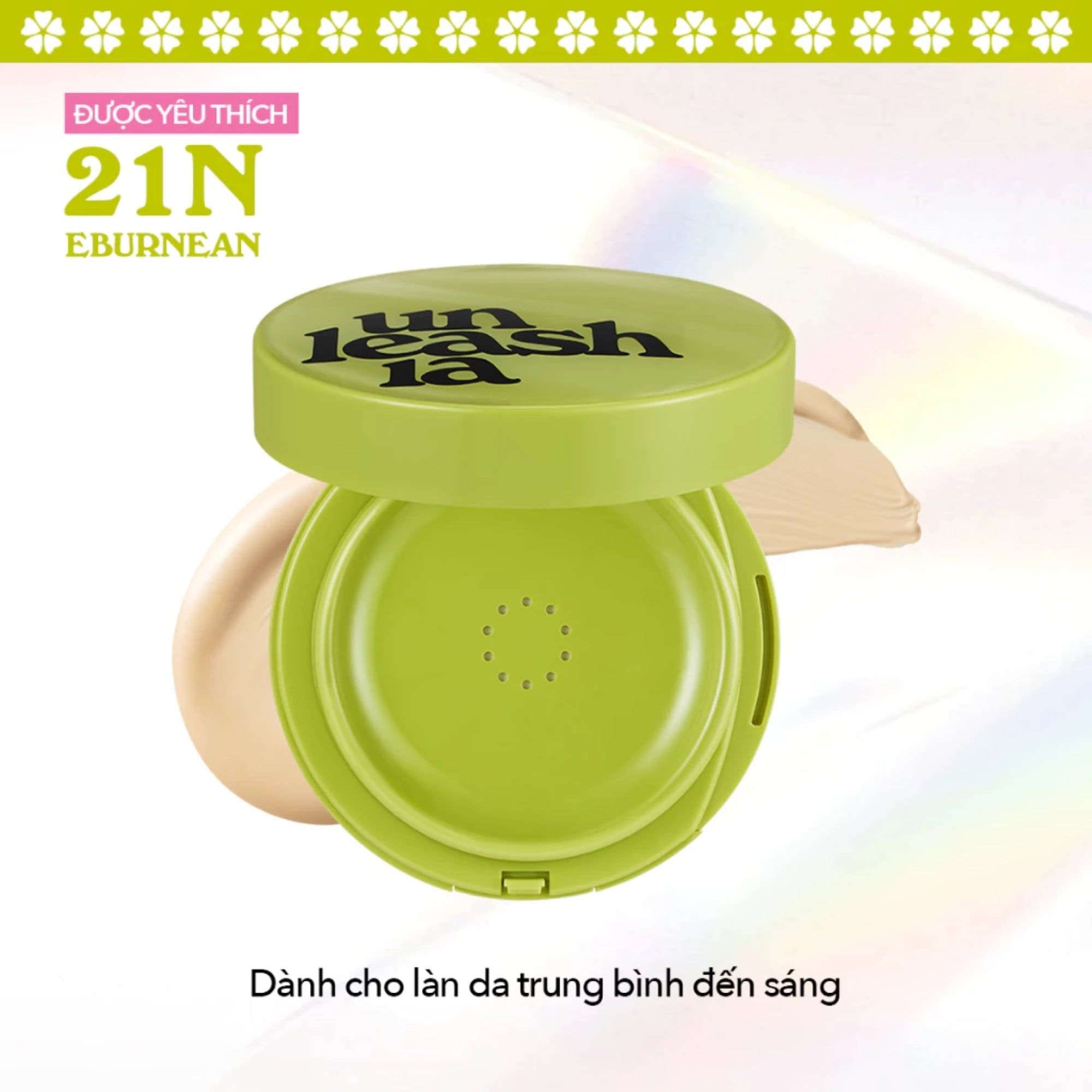 - Phấn Nước Bán Lì Unleashia Satin Wear Healthy-Green Cushion SPF30/PA++ sở hữu màu sắc tự nhiên giúp đem lại làn da mịn màng và tươi tắn hơn sau khi sử dụng với 3 màu: