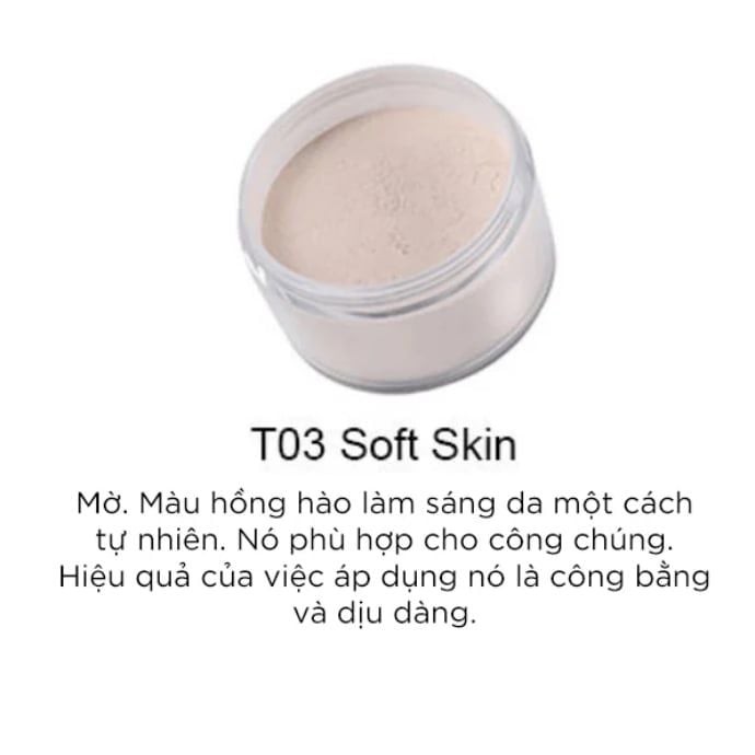 T03 Soft Skin: Màu nude nhẹ nhàng, tạo cảm giác da khỏe khoắn, hoàn hảo cho những ai yêu thích phong cách trang điểm giản dị nhưng vẫn rạng rỡ.