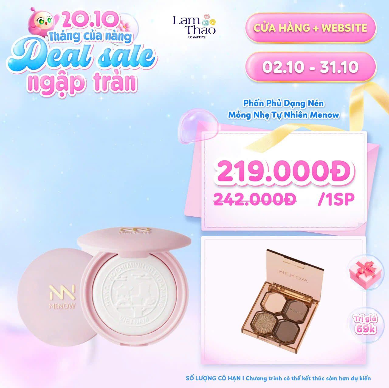 Hãy nhanh tay sở hữu Phấn Phủ Dạng Nén Mỏng Nhẹ Tự Nhiên Menow Clear Radiant Pressed Powder Viet Nam Edition tại Lam Thảo Cosmetics để trải nghiệm làn da mịn màng, tự nhiên suốt cả ngày!