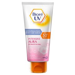 Serum Chống Nắng Dưỡng Thể Da Sáng Mịn Màng Bioré UV Anti-Pollution Body Care Serum Intensive Aura SPF 50+/PA+++ là kem chống nắng toàn thân đến từ thương hiệu mỹ phẩm Bioré thuộc tập đoàn Kao Nhật Bản sử dụng công nghệ Anti-Pollution giúp chống lại bụi bẩn và tạo hàng rào bảo vệ da công nghệ Moisture Pack dưỡng da ẩm mượt, mềm mại. Ngoài ra, kem chống nắng toàn thân chứa các thành phần tự nhiên giúp dưỡng ẩm và làm sáng da tuyệt vời.