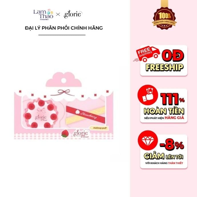 Set 2 Bông Mút Tán Nền Glorie Rubycell & Hydrophilic Polyurethane Strawberry Cake Collection