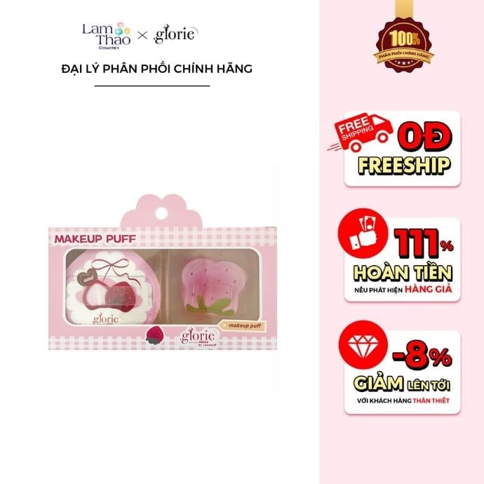 Set 2 Bông Mút Tán Nền Glorie Rubycell & Spandex-Blend Polyester Strawberry Cake Collection ( Kèm Hộp Đựng )