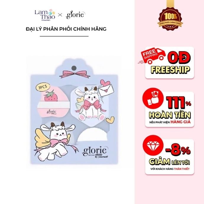 Set 3 Bông Glorie Baa Baa Sheep Collection Skin-Fit Powder Puffs ( Kèm Hộp Đựng )