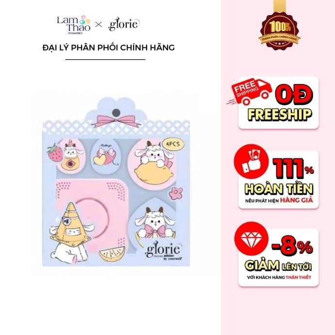Set 4 Bông Phấn Glorie Baa Baa Sheep Collection Pat-Pat Cushion Puffs ( Kèm Hộp Đựng )