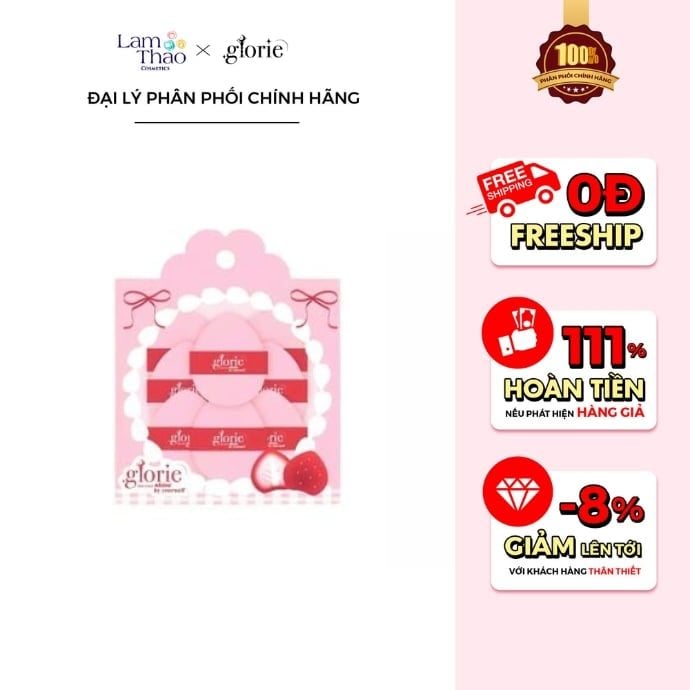 Set Bông Phấn Ngón Tay Glorie Strawberry Cake Collection Dual Dry & Wet Use Mini Finger ( Kèm Hộp Đựng )
