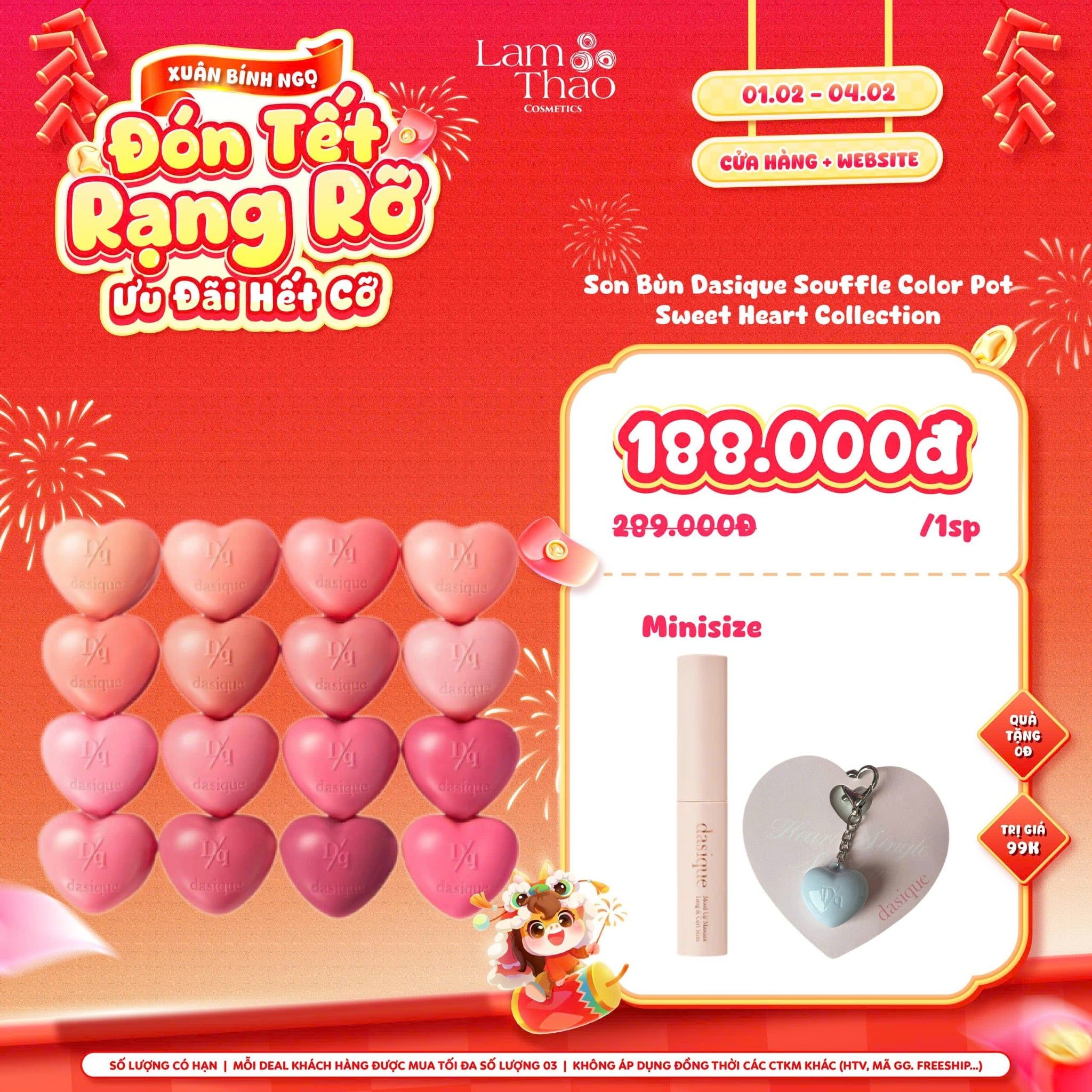 [DEAL SỐC 01.02 - 04.02 TẶNG MASCARA MINI + KEYRING DASIQUE] Son Bùn Dasique Souffle Color Pot Sweet Heart Collection