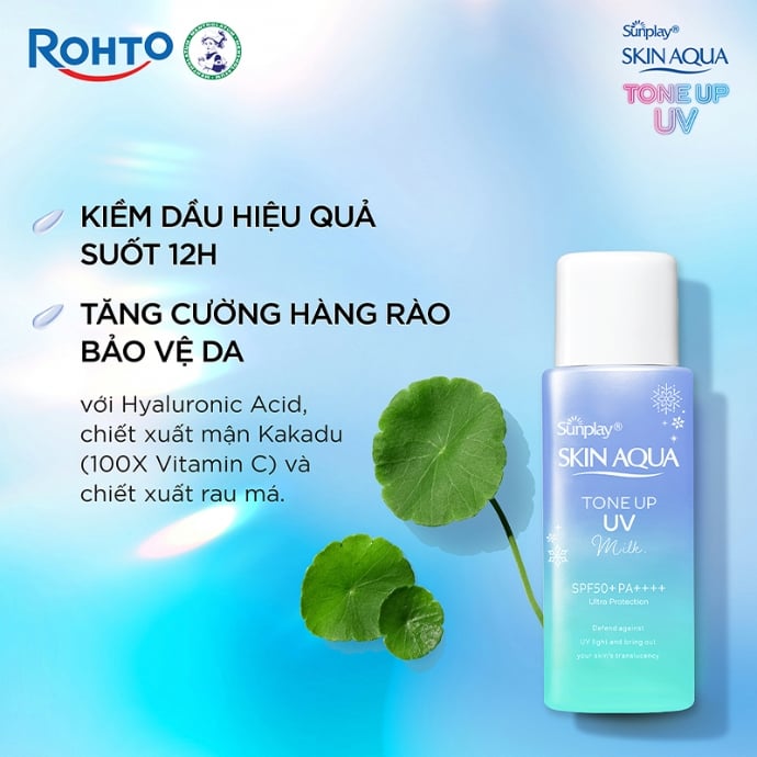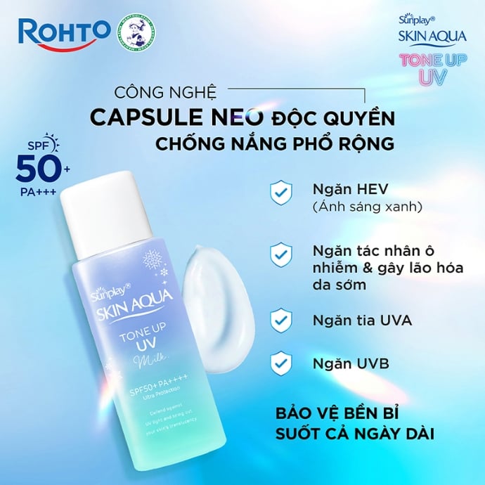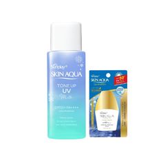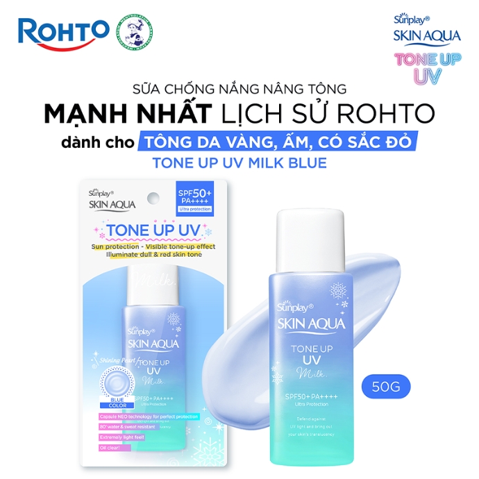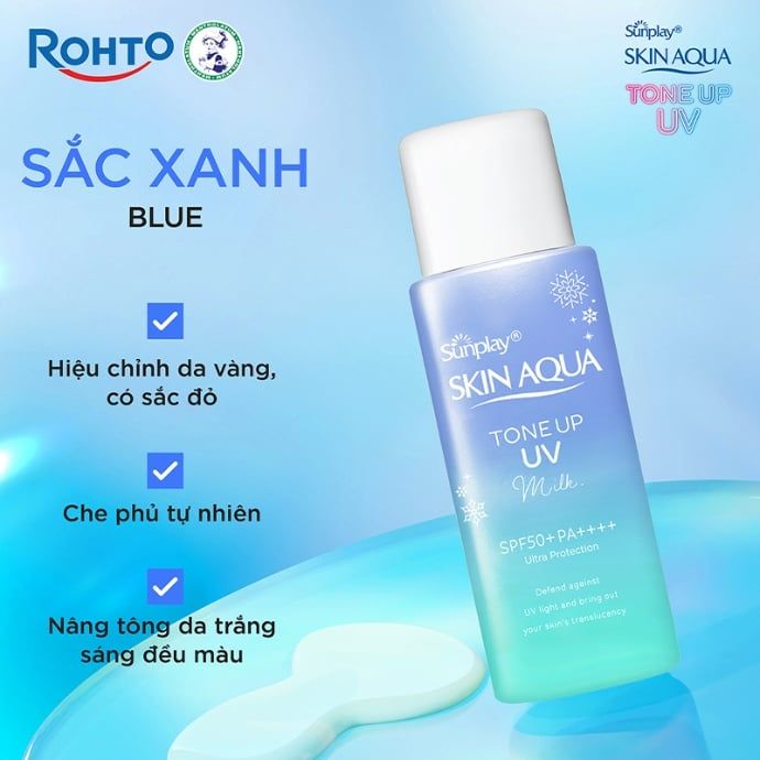 Ai cũng mong muốn chào ngày mới với làn da rạng rỡ, mịn màng và đều màu, nhưng ánh nắng, bụi bẩn cùng da xỉn màu đôi khi khiến điều đó trở nên khó khăn. Giữa hàng loạt sản phẩm chống nắng, làm sao để tìm được “người bạn đồng hành” vừa bảo vệ, vừa dưỡng da lại giúp làn da tươi sáng tự nhiên? Sữa Chống Nắng Hiệu Chỉnh Sắc Da Sunplay SkinAqua Tone Up UV Milk Blue chính là giải pháp hoàn hảo giúp bảo vệ da tối ưu trước tia UV, dưỡng ẩm và nâng tone tự nhiên. Với Skin Aqua, làn da của bạn sẽ luôn tươi tắn, rạng rỡ từ sáng đến tối.
