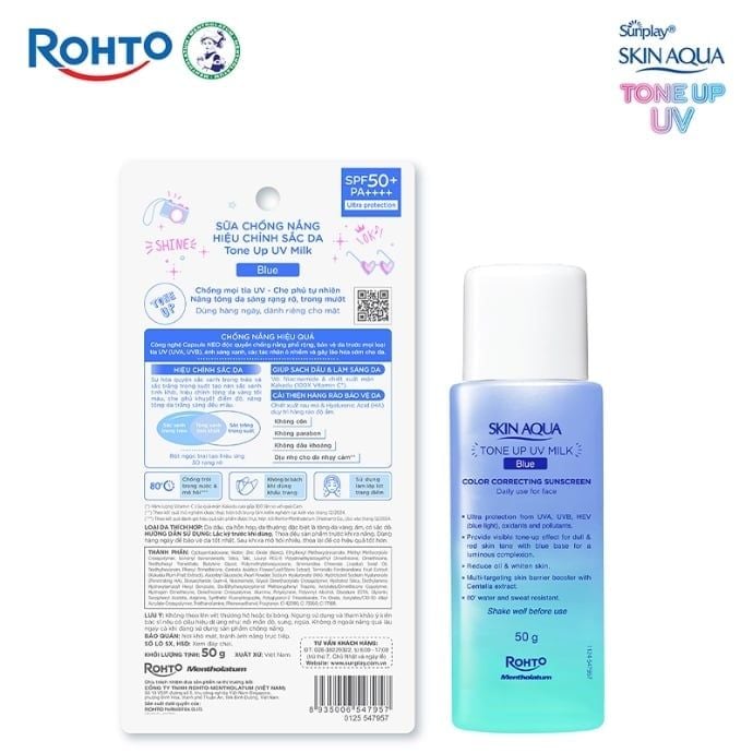 Sữa Chống Nắng Hiệu Chỉnh Sắc Da Sunplay SkinAqua Tone Up UV Milk Blue là một minh chứng điển hình với bảng thành phần lành tính vừa bảo vệ da tối ưu, vừa dưỡng ẩm, làm sáng và che phủ khuyết điểm nhẹ nhàng, giúp làn da rạng rỡ suốt cả ngày.