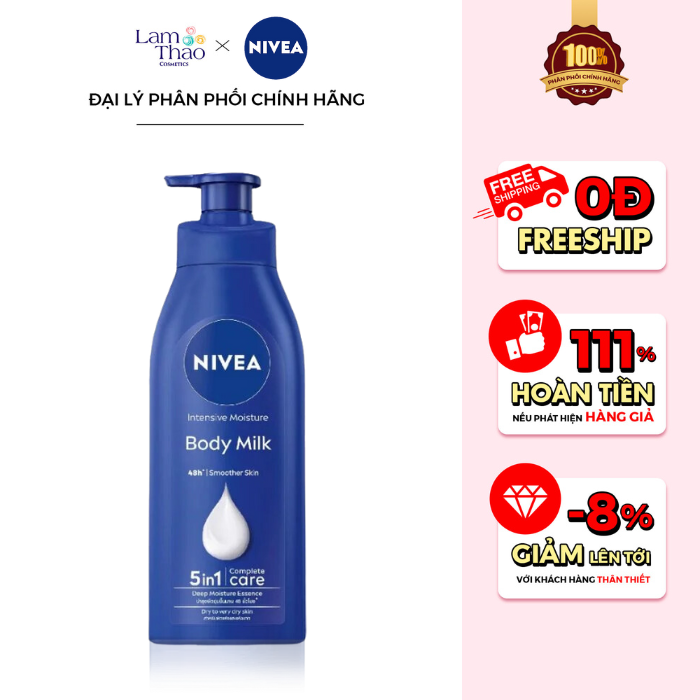 Nivea Intensive Moisture Body Milk 48H là sản phẩm chắc chắn nên có trong tủ đồ dưỡng da cho những ai đang tìm kiếm một sản phẩm dưỡng thể dưỡng ẩm chuyên sâu, giúp da sáng mịn và căng mượt suốt 48 giờ. Hiện tại, cửa hàng mỹ phẩm Lam Thảo Cosmetics là nhà phân phối chính hãng các sản phẩm Nivea tại Việt Nam. Đến với Lam Thảo, bạn sẽ được thoải mái mua sắm mà không cần phải lo lắng về chất lượng sản phẩm cho đến giá cả. Hãy đến với cửa hàng hoặc liên hệ với cùng mình qua hotline để trải nghiệm dịch vụ tư vấn chuyên nghiệp, nhận những ưu đãi hấp dẫn và tận hưởng làn da mềm mại, rạng rỡ mỗi ngày!