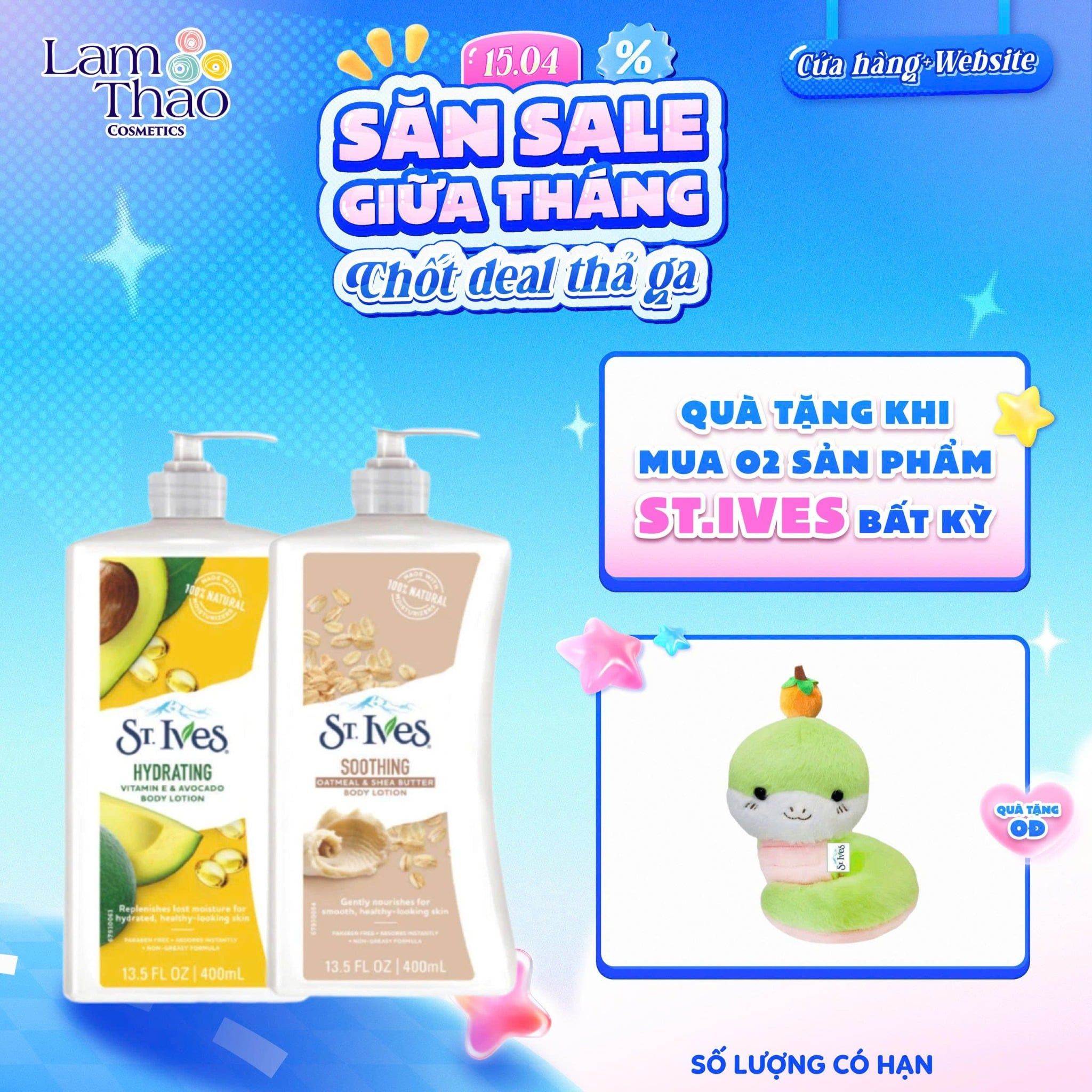 Bạn xứng đáng sở hữu một làn da mịn màng, thơm ngát và tràn đầy sức sống. Hãy để ST.Ives Body Lotion cùng Lam Thảo Cosmetics đồng hành trên hành trình đó – nơi bạn không chỉ tìm thấy sản phẩm chính hãng 100%, mà còn là những lời tư vấn tận tâm từ đội ngũ chăm sóc da chuyên nghiệp. Mua ngay hôm nay tại Lam Thảo Cosmetics – nơi mọi làn da đều được yêu thương đúng cách!