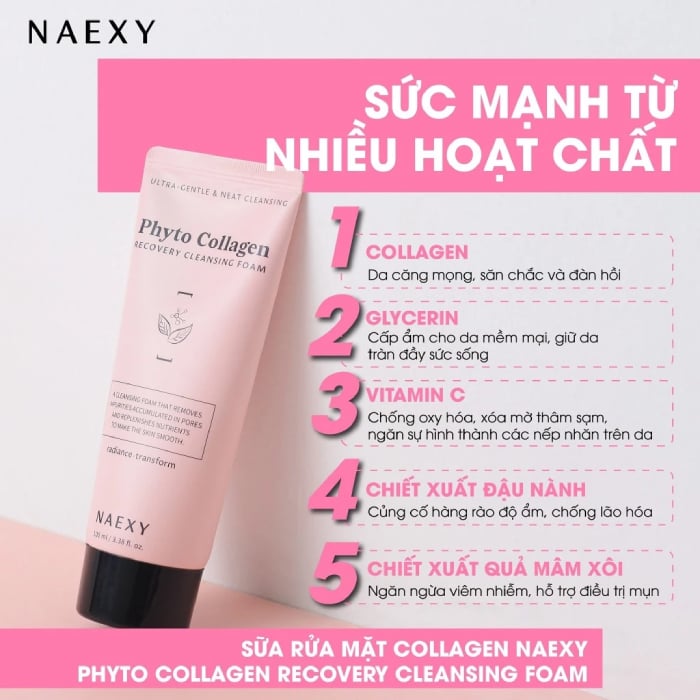 Sữa rửa mặt Naexy Phyto Collagen Recovery Cleansing Foam chính là cánh cổng đầu tiên mở ra hành trình phục hồi và tái sinh làn da – nhẹ nhàng nhưng đầy mê lực.