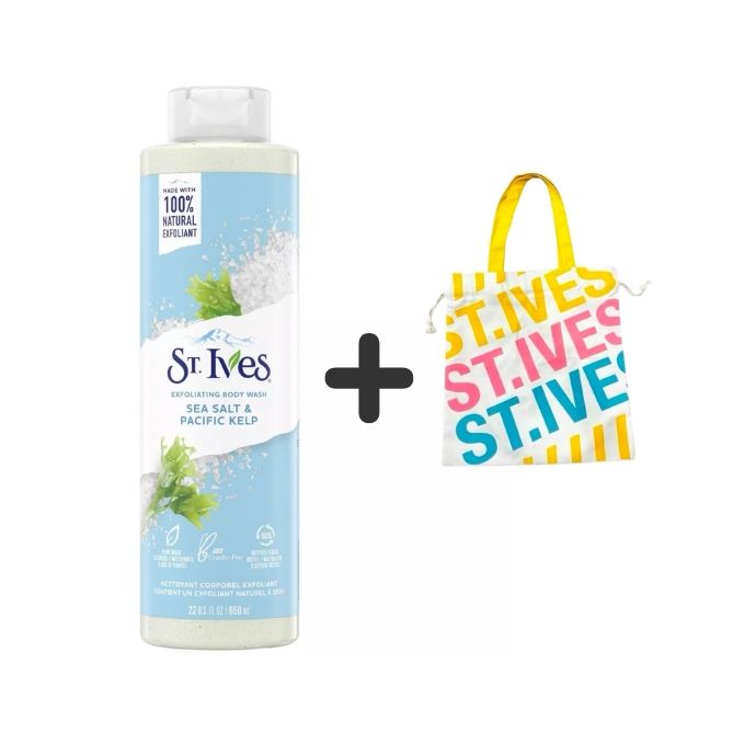 Sữa Tắm Loại Bỏ Da Chết St.Ives Purifying Sea Salt & Pacific Kelp Exfoliating Body Wash có chứa thành phần chiết xuất từ 100% muối biển và tảo biển. Đây là thành phần giúp cung cấp vitamin và các dưỡng chất cần thiết cho da. Riêng thành phần muối biển có khả năng hỗ trợ làm sạch sâu lỗ chân lông, ngăn ngừa sự phát triển của vi khuẩn gây ra mụn và giúp tẩy da chết cơ thể một cách tự nhiên.