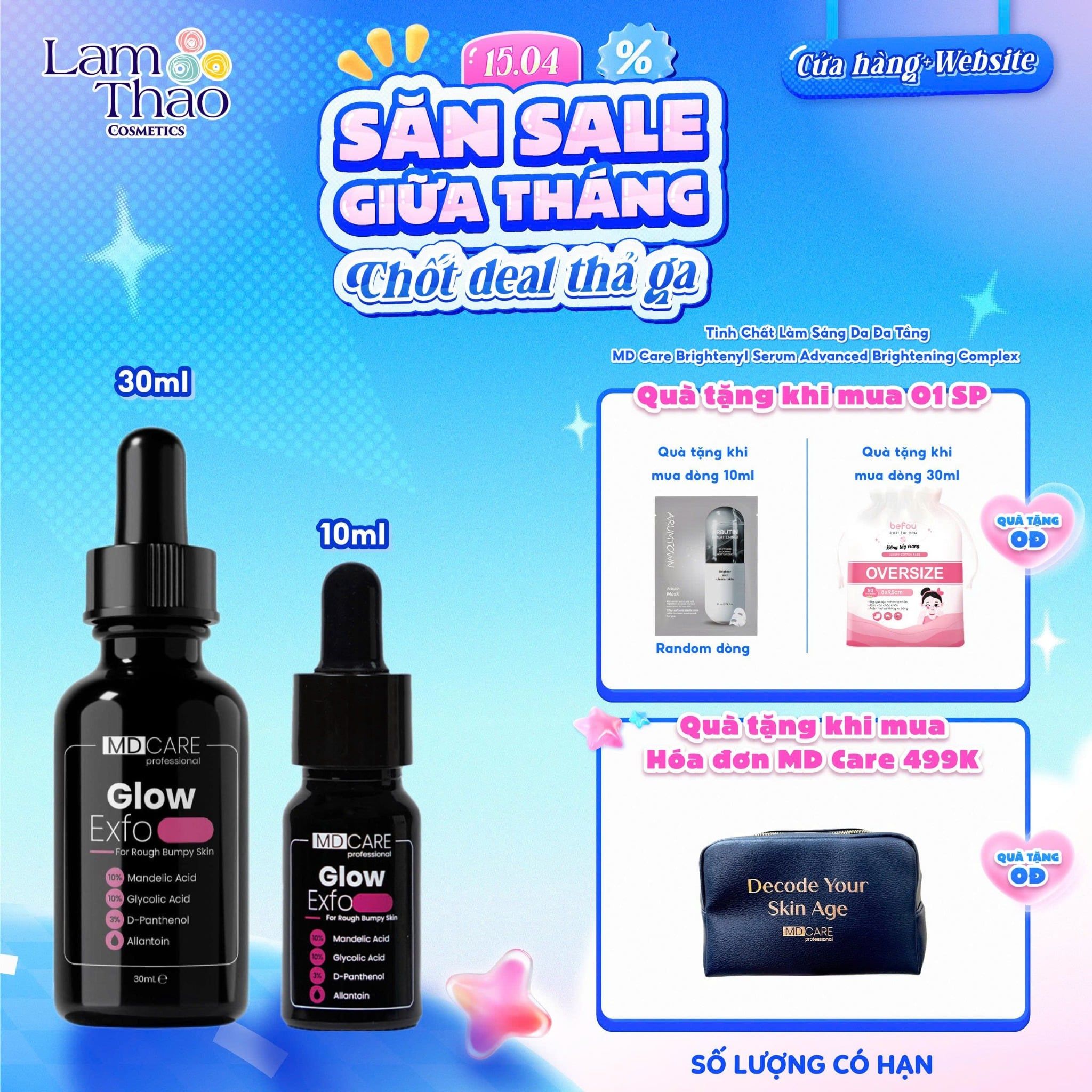 [MUA SIZE 10ML TẶNG 01 MASK ARUMORE - SIZE 30ML TẶNG BTT BEFOU OVERSIZE 50 MIẾNG] [HĐ MD CARE 499K TẶNG 01 TÚI DA] Tẩy Tế Bào Chết Làm Sáng, Mờ Thâm Và Đều Màu Da MD Care Glow EXFO