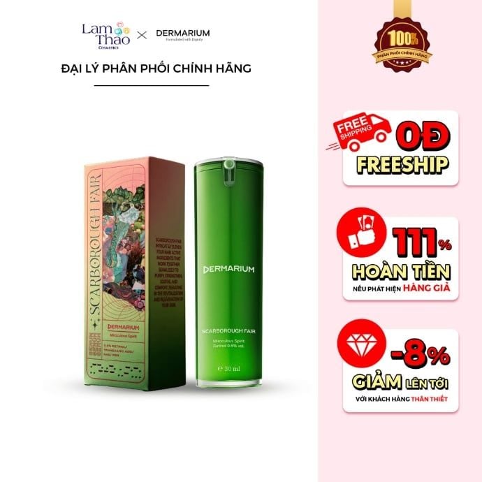 Từ những trăn trở về làn da người Việt - nơi khí hậu, thói quen và môi trường luôn thử thách sự khỏe mạnh của da. Thương hiệu hướng đến việc tạo nên những sản phẩm đặc trị với hiệu quả nhìn thấy được, nhưng vẫn dịu dàng và an toàn cho người dùng. Trong số đó, Tinh Chất Cải Thiện Vấn Đề Sắc Tố Dermarium Scarborough Fair nổi bật với công thức chứa Retinol 0.5% và Tranexamic Acid 2% giúp cải thiện sắc tố, tái tạo làn da và mang lại vẻ căng sáng, mịn màng.