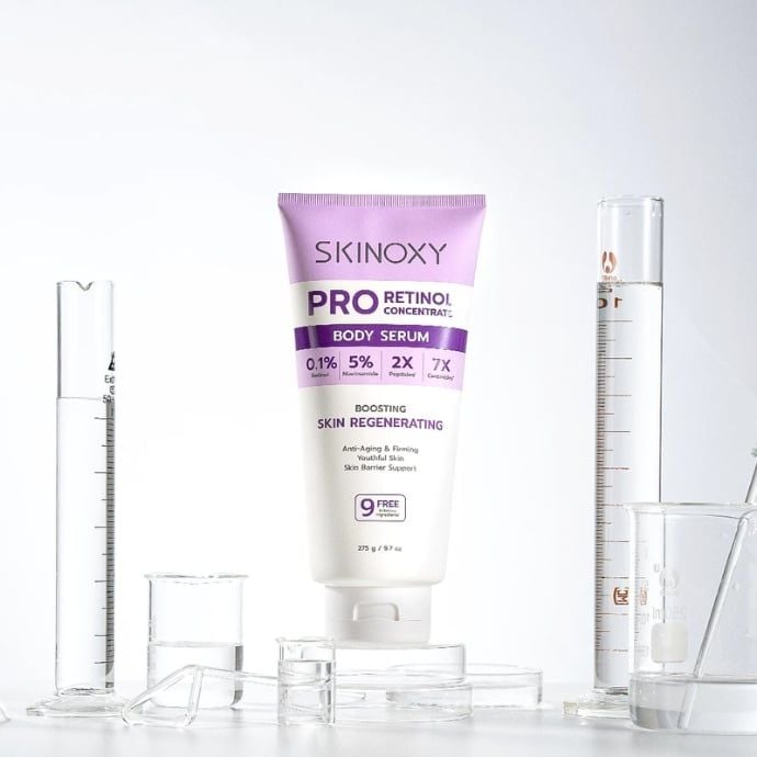 Skinoxy ra đời với tâm huyết mang đến cho phái đẹp một giải pháp chăm da toàn diện - khoa học - dễ tiếp cận. Họ tin rằng mỗi làn da đều có thể “hồi sinh”, dù đang khô sạm, thiếu sức sống hay đã lộ rõ dấu hiệu lão hóa. Bằng những công thức hiện đại, chăm chút từ chi tiết nhỏ nhất, Skinoxy không chỉ giúp da bạn phục hồi mà còn “thăng hạng”, trở nên khỏe mạnh, mịn màng và rạng rỡ hơn mỗi ngày. Và tinh thần ấy được thể hiện rõ nhất trong Tinh Chất Dưỡng Thể Skinoxy Pro Retinol Concentrate Body Serum - sản phẩm tiêu biểu giúp bạn bắt đầu hành trình nâng niu làn da cơ thể theo cách nhẹ nhàng nhưng đầy hiệu quả.