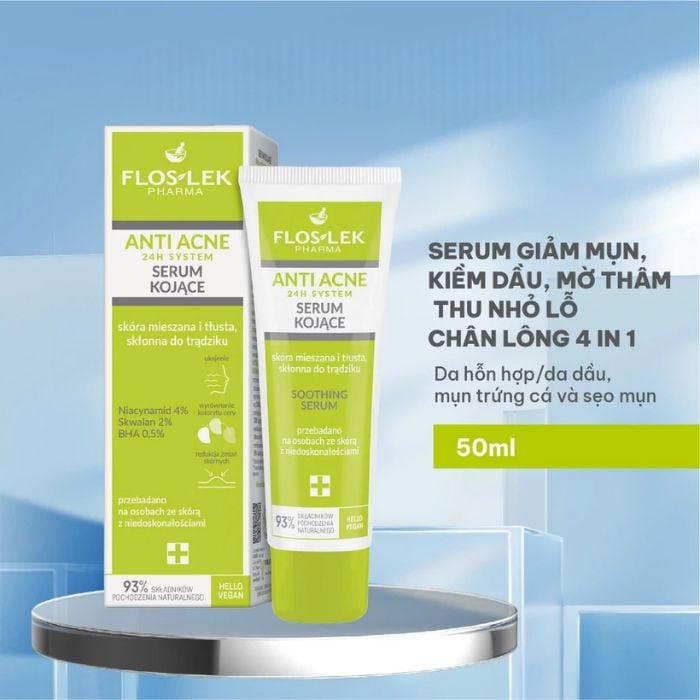 Da mụn không chỉ là vấn đề về ngoại hình, mà còn ảnh hưởng đến tâm lý và sự tự tin của Gen Z trong học tập, làm việc và cả những buổi tụ tập cùng bạn bè. Nhiều bạn dù đã thử qua hàng loạt sản phẩm skincare nhưng vẫn không tìm thấy giải pháp thực sự hiệu quả và bền vững. Chính vì vậy, việc lựa chọn một tinh chất hỗ trợ kiềm dầu, giảm mụn với công thức an toàn, khoa học và đã được kiểm chứng trở thành ưu tiên hàng đầu. Trong số đó, cái tên nổi bật chính là Tinh Chất Floslek Anti Acne 24H System Soothing Serum Mixed Oily And Acne Prone Skin – giải pháp đến từ Ba Lan, đang được nhiều bạn trẻ tin tưởng lựa chọn.