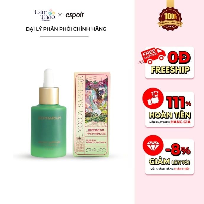 Sau hành trình chăm da kiên nhẫn và yêu thương, làn da xứng đáng được nâng niu bằng những gì dịu dàng và hiệu quả nhất. Tinh Chất Chống Lão Hoá Dermarium Moody Sapphire chính là món quà dành cho làn da đang cần được tái sinh, giúp khôi phục sức sống, độ đàn hồi tự nhiên theo thời gian. Bạn có thể dễ dàng tìm thấy sản phẩm nhà Dermarium chính hãng tại Lam Thảo Cosmetics - địa chỉ tin cậy đồng hành cùng làn da khỏe đẹp mỗi ngày. Hãy để Lam Thảo giúp bạn chọn lựa sản phẩm phù hợp và bắt đầu hành trình tái sinh làn da với những trải nghiệm chăm sóc da chuẩn khoa học và đầy yêu thương.