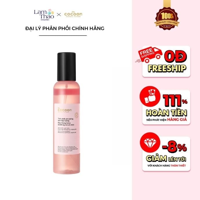 Đôi khi làn da chỉ cần một bước chăm sóc đơn giản nhưng đúng lúc để trở nên mềm mại và dễ chịu hơn. Tinh Chất Xịt Dưỡng Cocoon Sen Hậu Giang với lớp sương dưỡng mỏng nhẹ sẽ là người bạn nhỏ giúp làn da được cấp ẩm, làm dịu và giữ vẻ căng bóng tự nhiên suốt ngày dài. Nếu bạn đang tìm mua sản phẩm chính hãng, bạn có thể ghé Lam Thảo Cosmetics để tham khảo nhé. Tại đây, chúng mình luôn có sẵn nhiều sản phẩm skincare được chọn lọc kỹ càng, giúp bạn dễ dàng tìm được món chăm sóc da phù hợp với nhu cầu của mình.