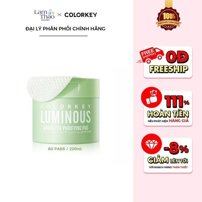 Chăm sóc da không cần quá cầu kỳ, chỉ cần chọn đúng sản phẩm phù hợp để làn da được làm sạch và cân bằng mỗi ngày. Với Toner Pad Cấp Ẩm & Làm Dịu Da Colorkey Luminous Green Tea Purifying Pad, bạn có thể đơn giản hóa chu trình skincare nhưng vẫn đảm bảo hiệu quả cấp ẩm và hỗ trợ cải thiện mụn rõ rệt. Nếu bạn đang tìm một địa chỉ uy tín để tìm sản phẩm chính hãng, Lam Thảo Cosmetics luôn sẵn sàng đồng hành cùng bạn với đầy đủ phiên bản và mức giá tốt nhất. Ghé Lam Thảo để chọn cho mình một “trợ thủ” chăm da dịu nhẹ và bắt đầu hành trình nuôi dưỡng làn da khỏe đẹp từ hôm nay nhé 💚