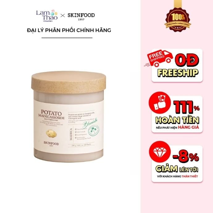 Giữa thời tiết nóng ẩm và ô nhiễm như hiện nay, làn da rất dễ rơi vào tình trạng nhạy cảm, và thiếu sức sống dù đã skincare đều đặn. Nhiều cô nàng vẫn loay hoay tìm một sản phẩm vừa đủ dịu nhẹ để không gây kích ứng, vừa có khả năng cải thiện tông da an toàn. Hiểu được nỗi lo đó, SKINFOOD đã mang đến giải pháp chăm sóc da tiện lợi với Toner Pad Khoai Tây Madecassoside Skinfood Potato Madecassoside Soothing Pad - giúp làm dịu, cấp ẩm và hỗ trợ dưỡng sáng mỗi ngày. Đây chính là “trợ thủ” lý tưởng cho làn da đang cần được phục hồi và nuôi dưỡng nhẹ nhàng.