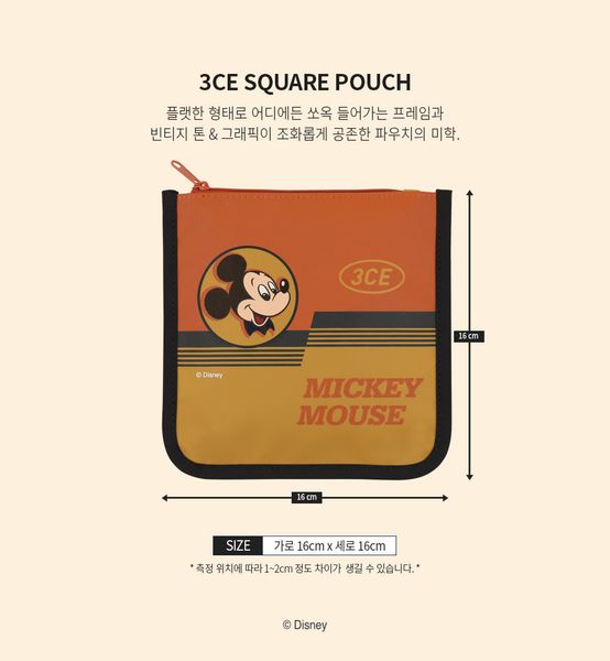 Túi Đựng Mỹ Phẩm 3CE x Disney Square Pouch