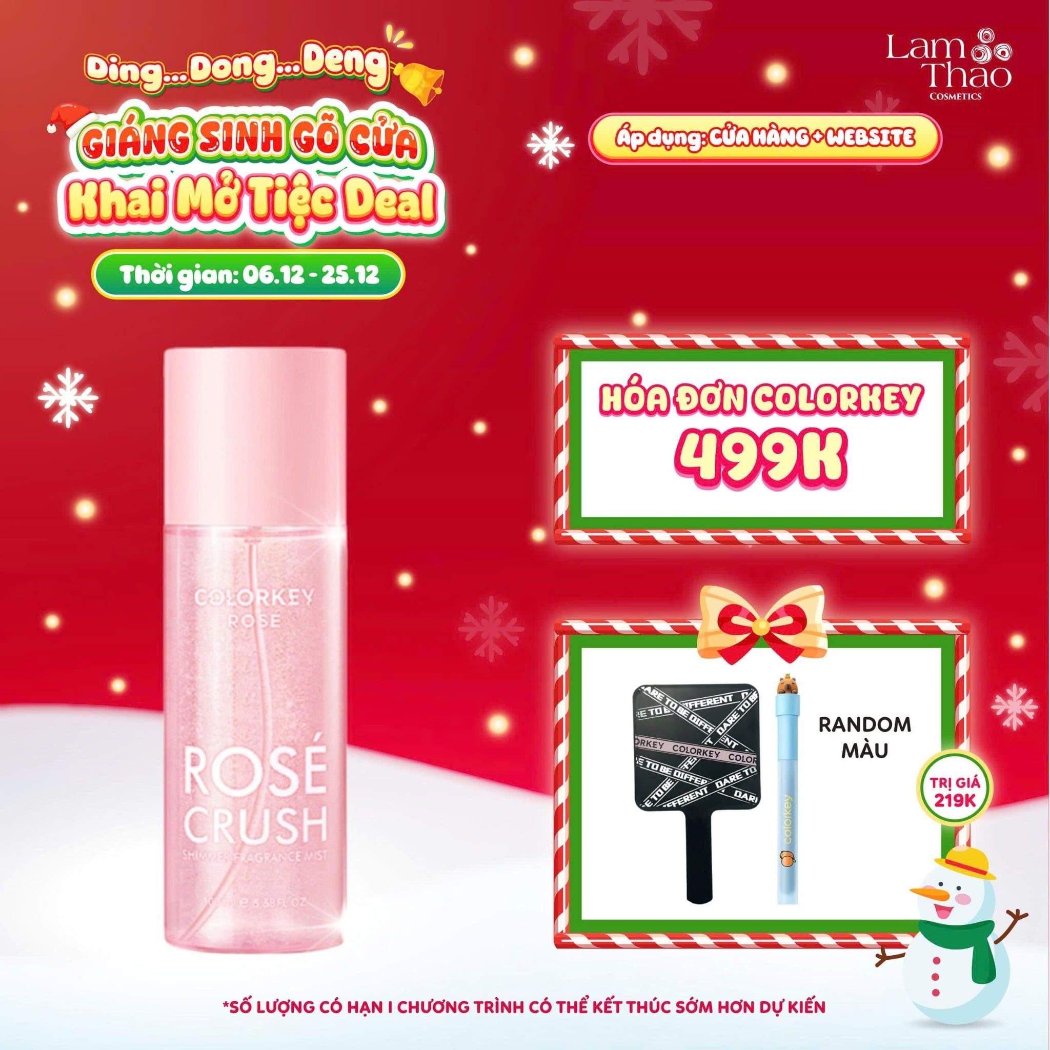 [DEAL SỐC 6.12 - 25.12 MUA HOÁ ĐƠN COLORKEY 499K TẶNG GƯƠNG + SON KEM LÌ] Xịt Thơm Colorkey Rose Crush Shimmer Fragrance Mist